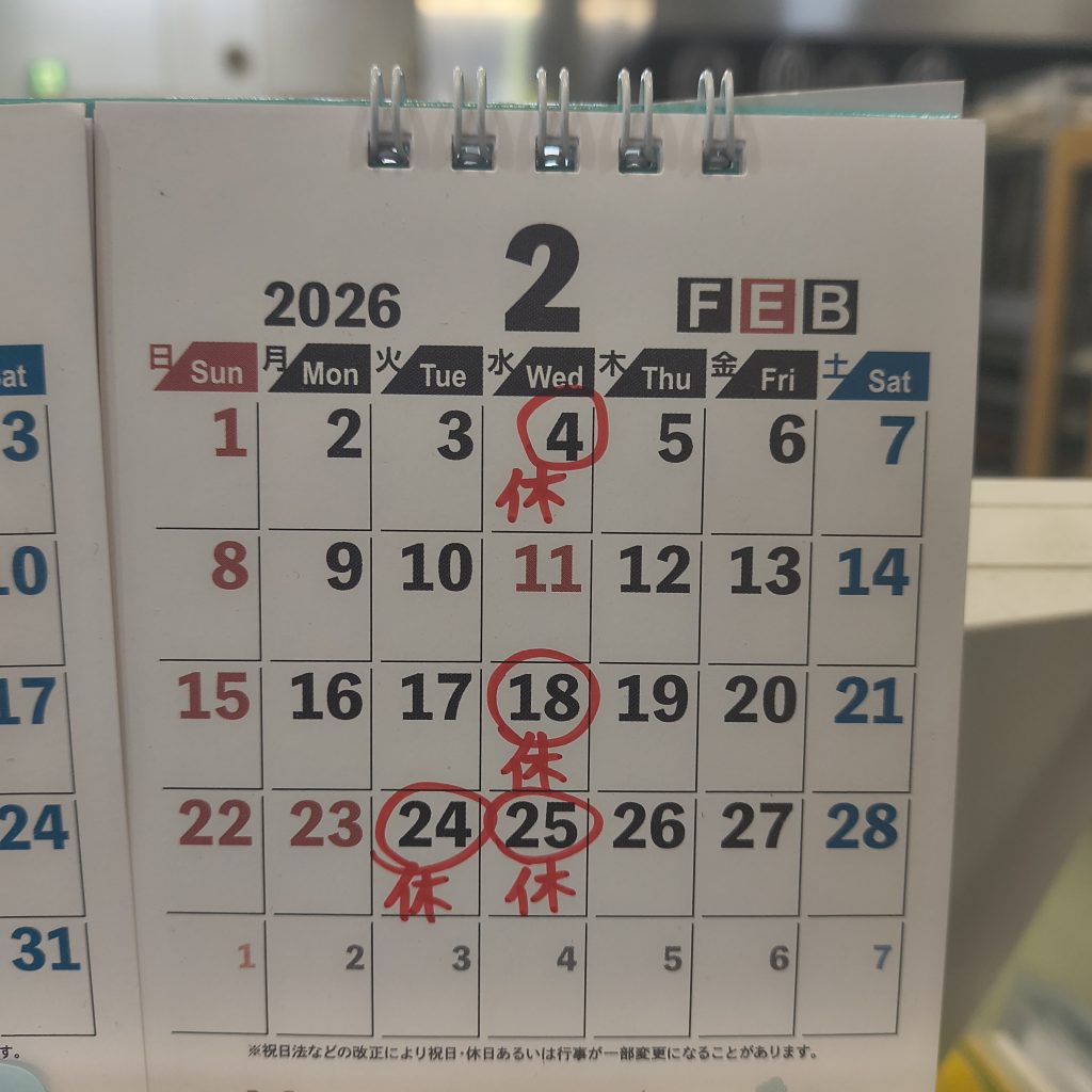 2月の休み案内 By fukuzato Posted 2026年1月31日 In パティスリー・ランヴォール 2月の休み案内2026-01-312026-01-31http://lenvol.okinawa/wp-content/uploads/2017/11/main-logo2.jpgムダにこだわり過ぎるパティシエの店ランヴォール-lenvolhttps://lenvol.okinawa/wp-content/uploads/2026/01/7258-scaled.jpg200px200px 0 Recent Posts今年1年ありがとうございました😊12月の休み案内2025クリスマスケーキ予約受け付け致します😊
